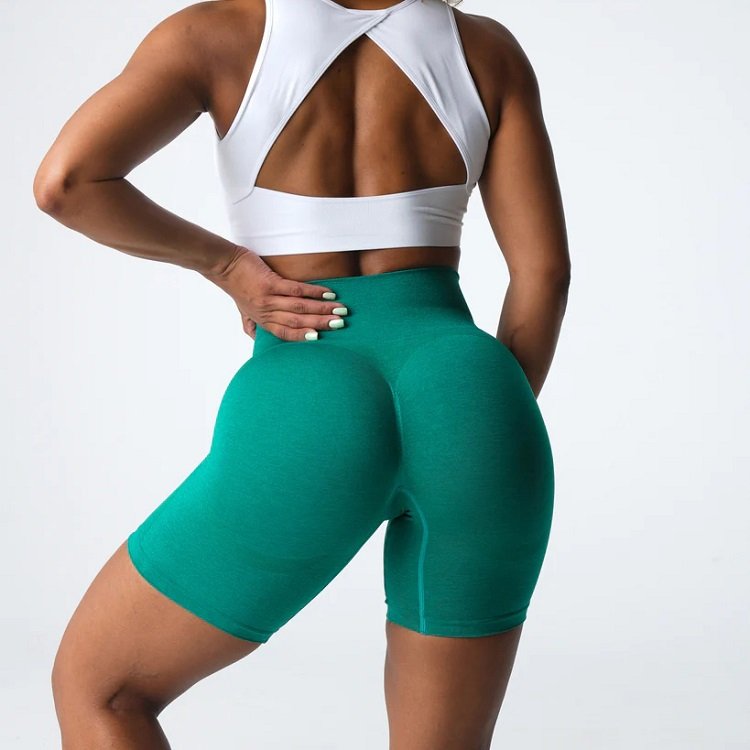 Women Girls Compression High Waist Stretch Fitness Training Scrunch Seamless Contour Biker Shorts in Customized Colors.