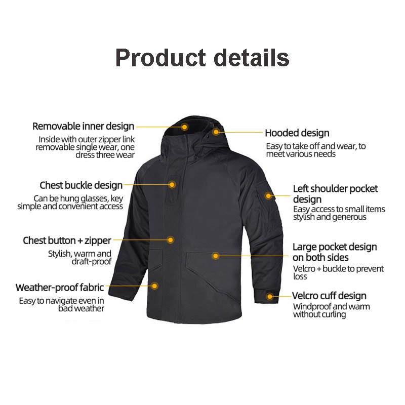 Designed for outdoor enthusiasts and professionals, our Two-Piece Waterproof Tactical Jacket combines durability, functionality, and style. Featuring a detachable flannel liner, this jacket offers versatility for varying weather conditions, making it an ideal choice for tactical operations, hiking, camping, and other outdoor activities.