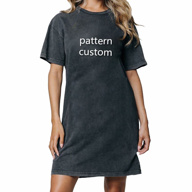 Wholesale Custom Embroidery/Screen Printing/Digital Printing T Dress, Hot Selling Most Popular Breathable Performance T Dress Custom Logo High-Quality Womens Long Tee Custom Printing T Dress.