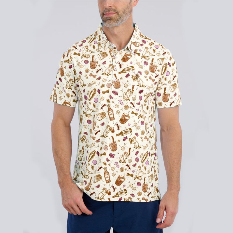 Introducing our Customizable Vintage Cocktail Print Polo Shirts for Men, a stylish blend of retro-inspired design and modern sophistication. Featuring a playful pattern of twisted caps, glasses, bottles, shakers, and citrus, these polos capture the essence of a good time, making them perfect for corporate events, hospitality uniforms, or promotional branding. Crafted for comfort and durability, they’re ideal for bulk orders with customization options to suit your brand’s unique identity.