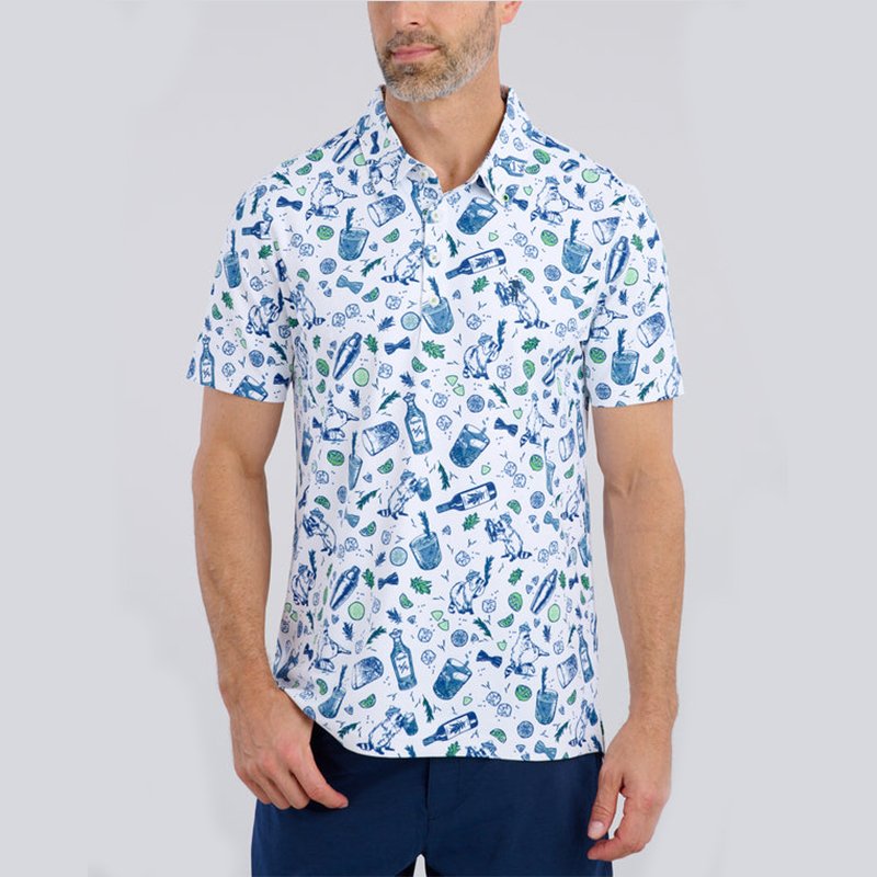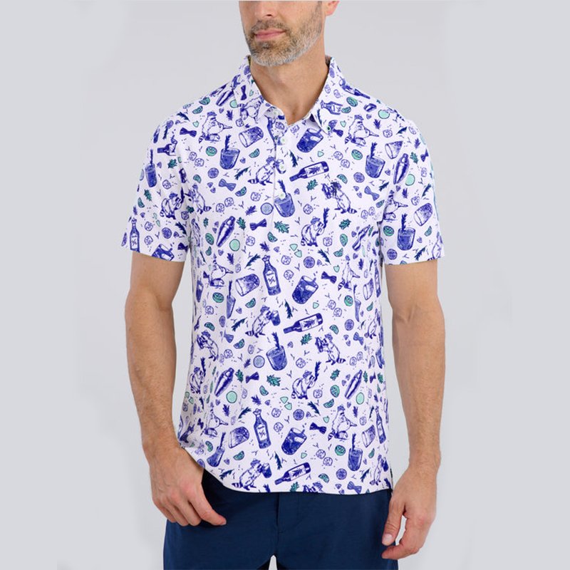 Customizable Vintage Cocktail Print Polo Shirts for Men