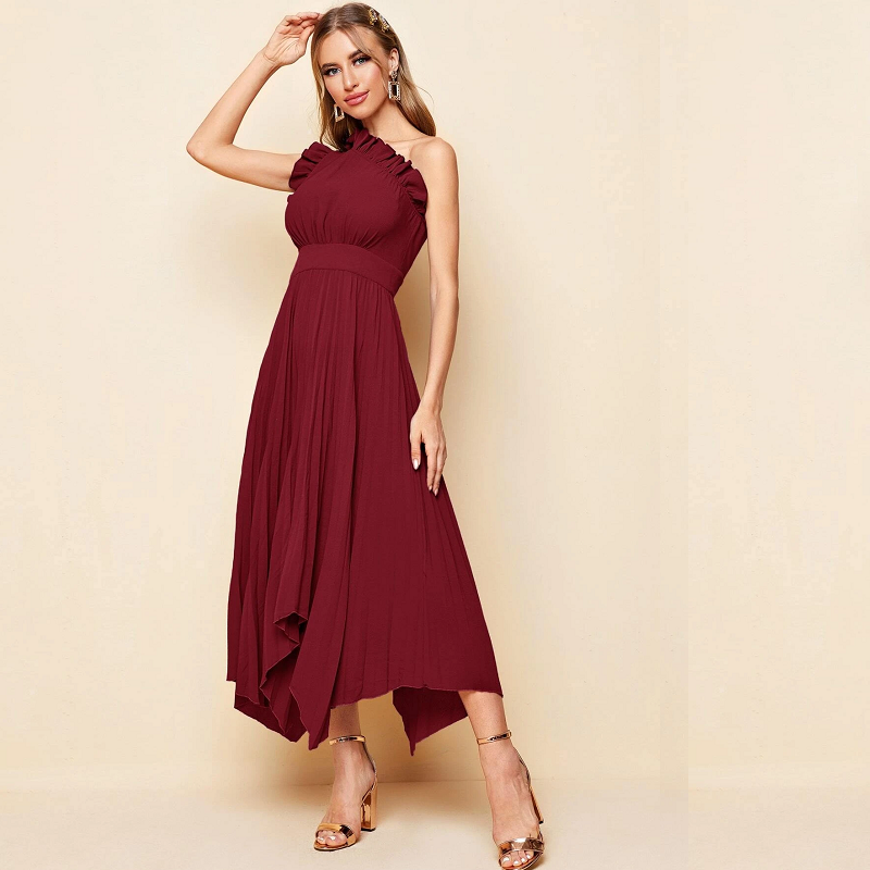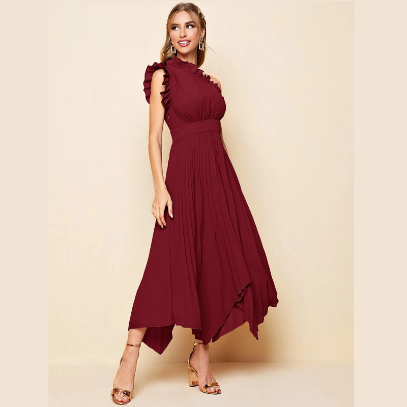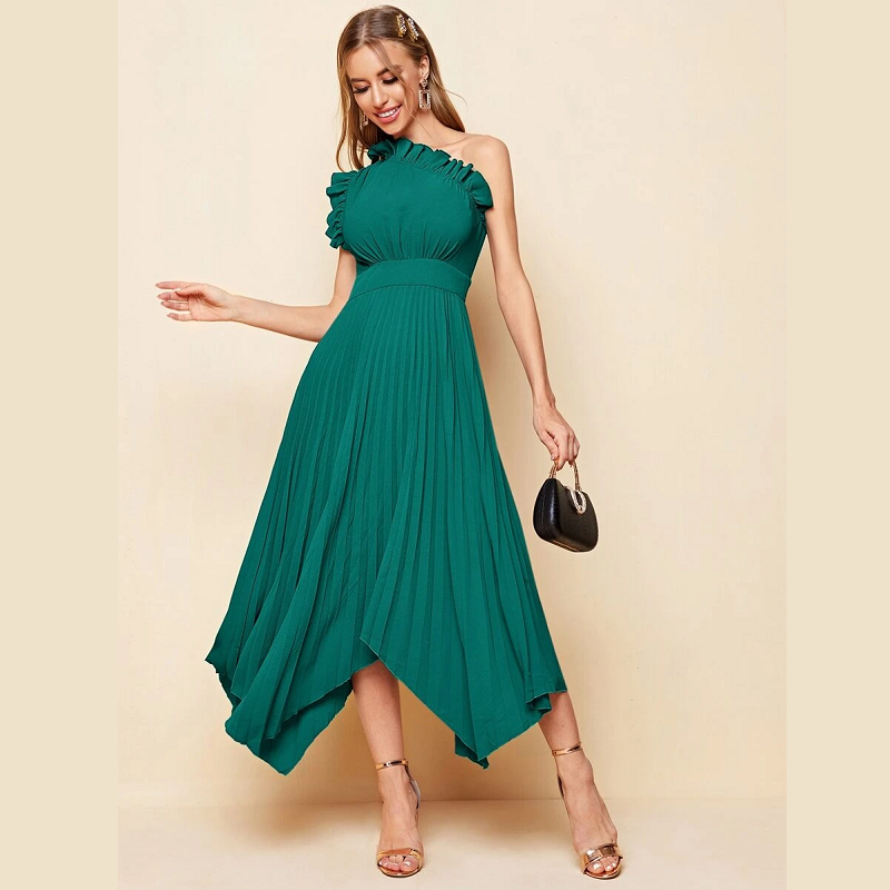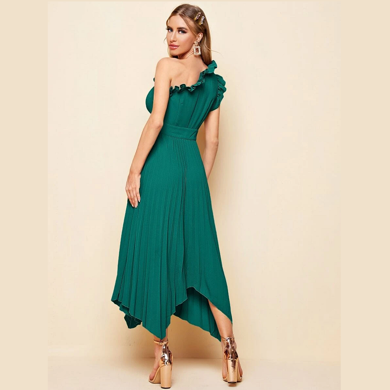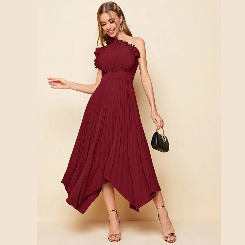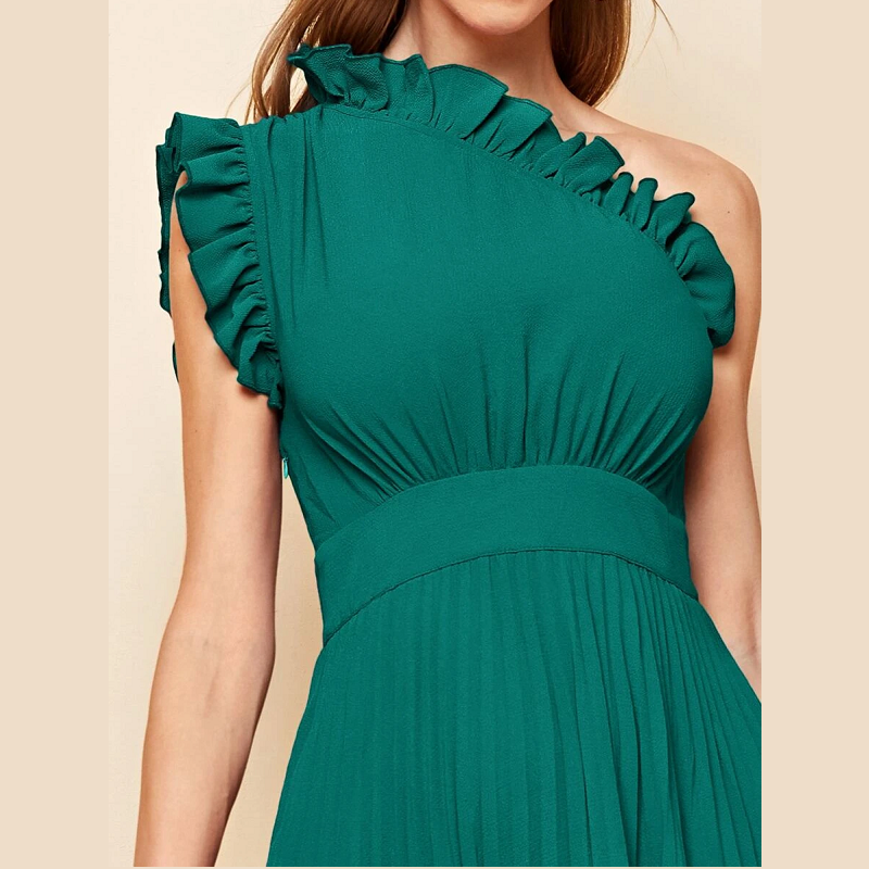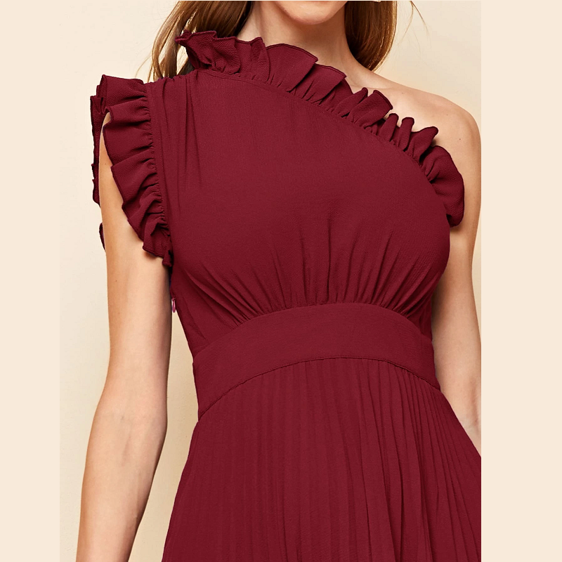 Women’s Dresses One Shoulder Ruffle Detail Pleated Hanky Hem Dress Summer Homecoming Dress for Women (Color : Purple)