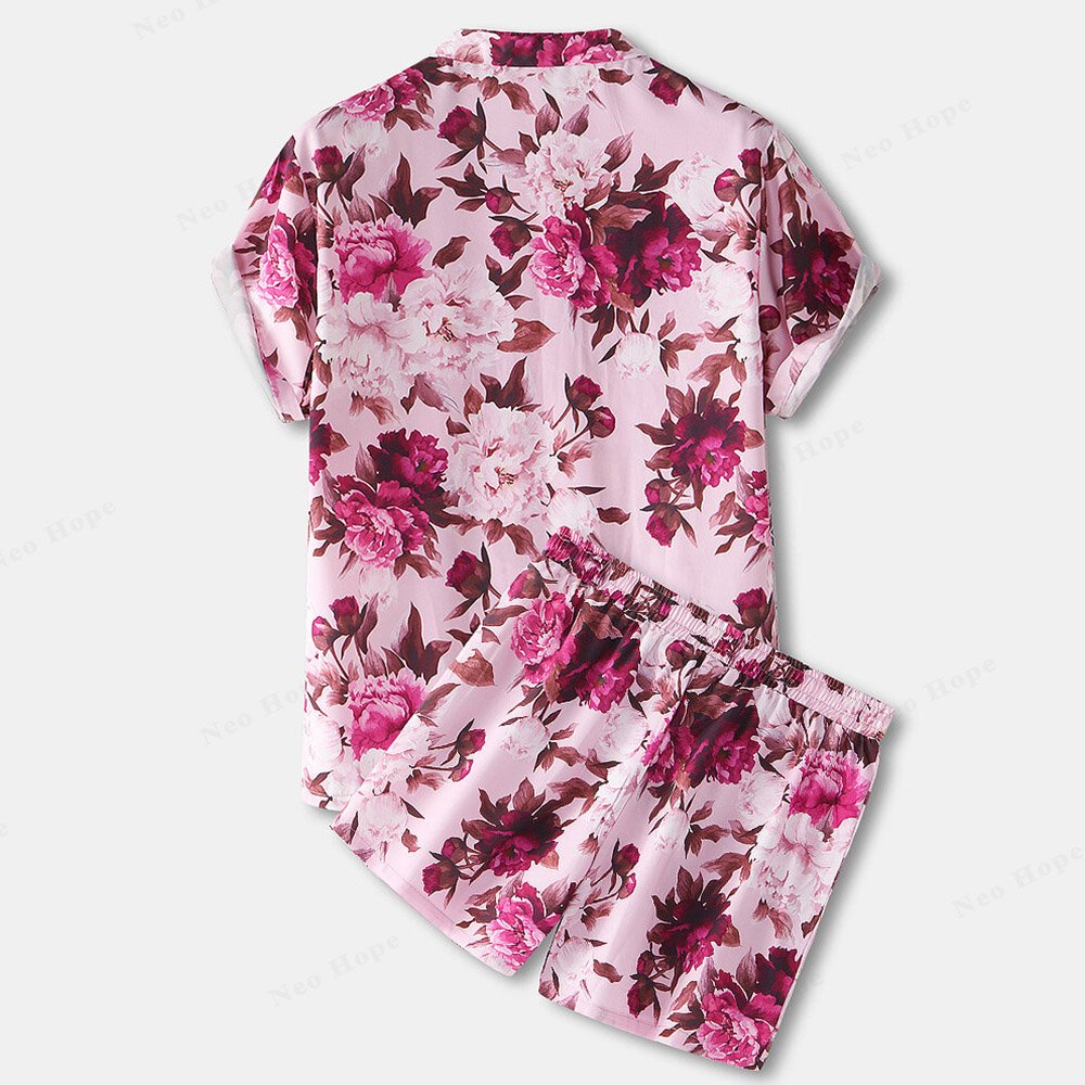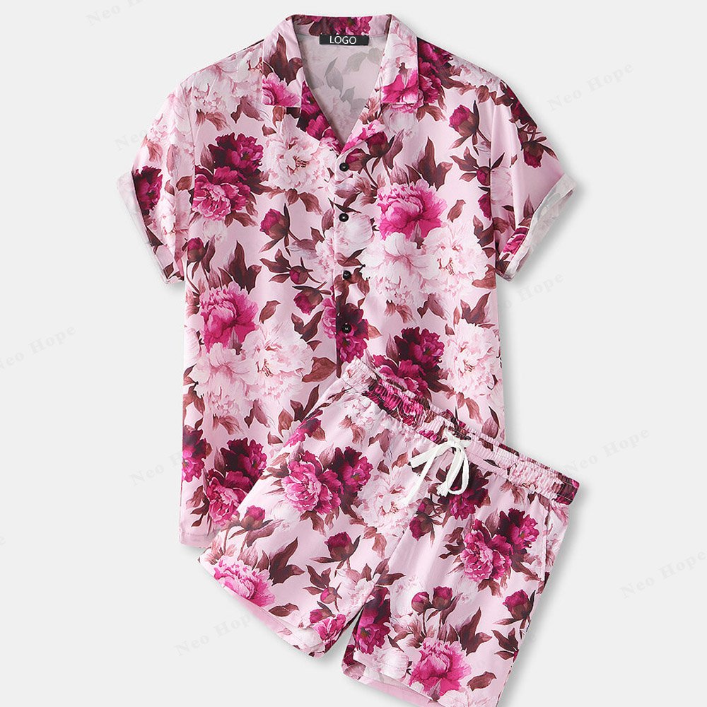 Manufacturer Custom Summer Outfits Fashion All Over Floral Print Quick Dry Thin Mens Hawaiian Shirts And Shorts Two Piece Sets
