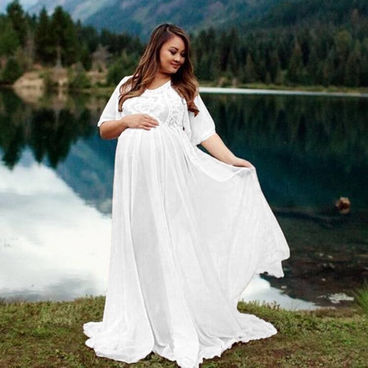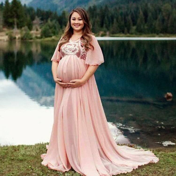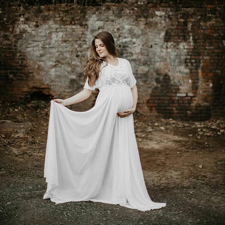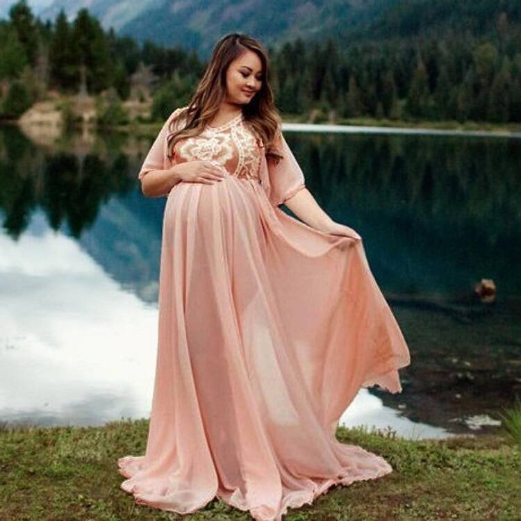 Customized Maternity Clothes Wholesale Cute Maternity Dresses Pography Props Lace Chiffon Pregnancy Dress Po Shoot For Baby Showers Long Pregnant Women Maxi Gown