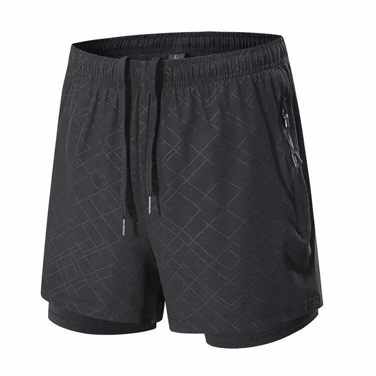 Two In One Five Inch Sweat Gym Shorts Men Compression Liner Woven Embossed Polyester Workout Double Layer Mesh Shorts from Mens Shorts Manufacturers Collection.