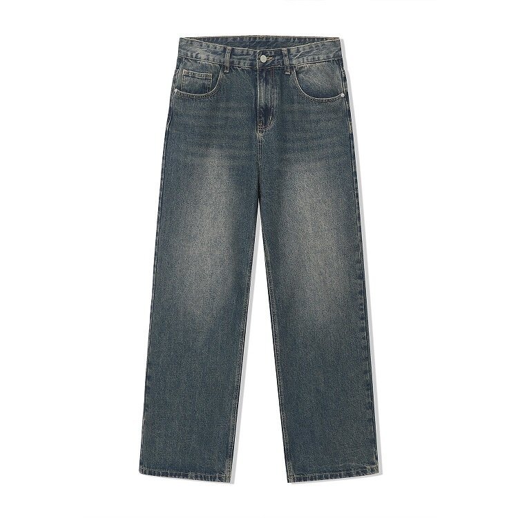 Custom New Straight Wash Jeans Retro Blue Men’s Loose Wide Leg Mopping Jeans High Street Distressed Denim Pants.Customized OEM Design Jeans.