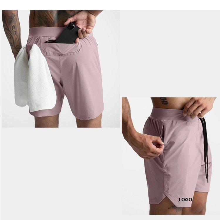 Two In One Five Inch Sweat Gym Shorts Men Compression Liner Woven Embossed Polyester Workout Double Layer Mesh Men’s Shorts from Men’s Custom Shorts Manufacturers Collection.