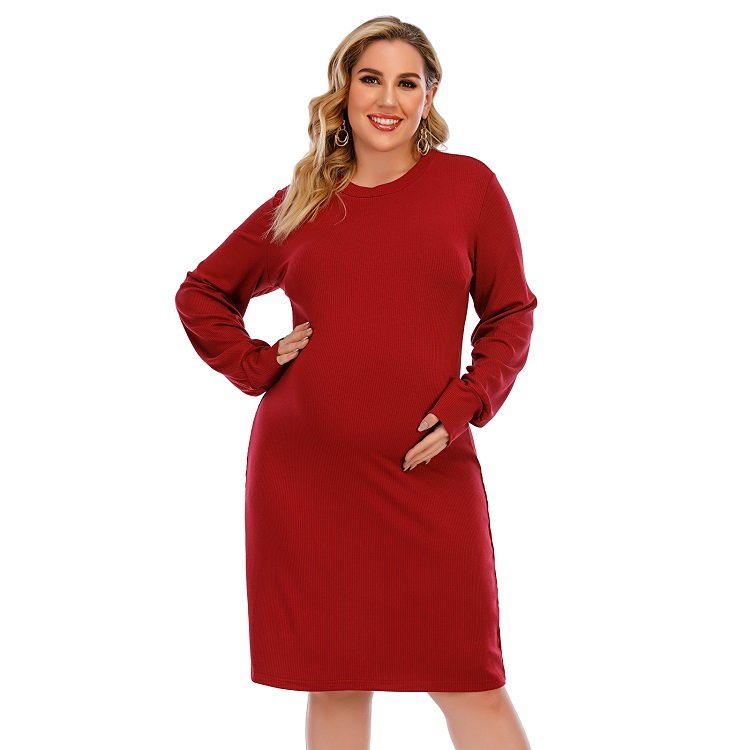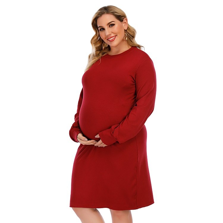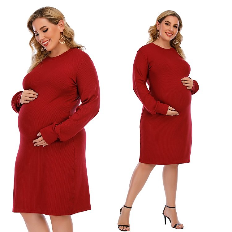 Pregnant Wholesale Solid Color Cotton Pregnancy Maternity Long Sleeve Round Neck Midi Casual Dress Vestido Maternal For Pregnant Women.