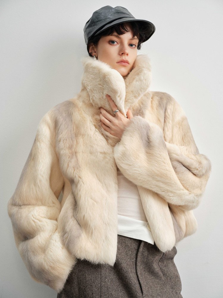 Premium OEM Siberian Angora rabbit fur coats for luxury brands. Hand-selected pelts from Turkey with 3cm+ fur length.