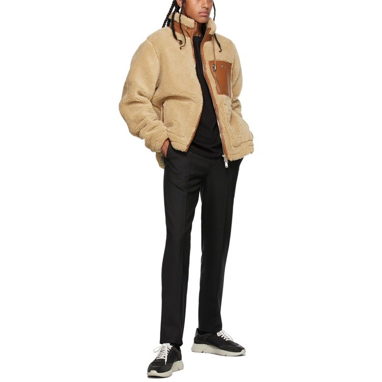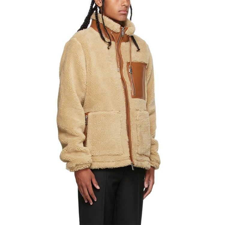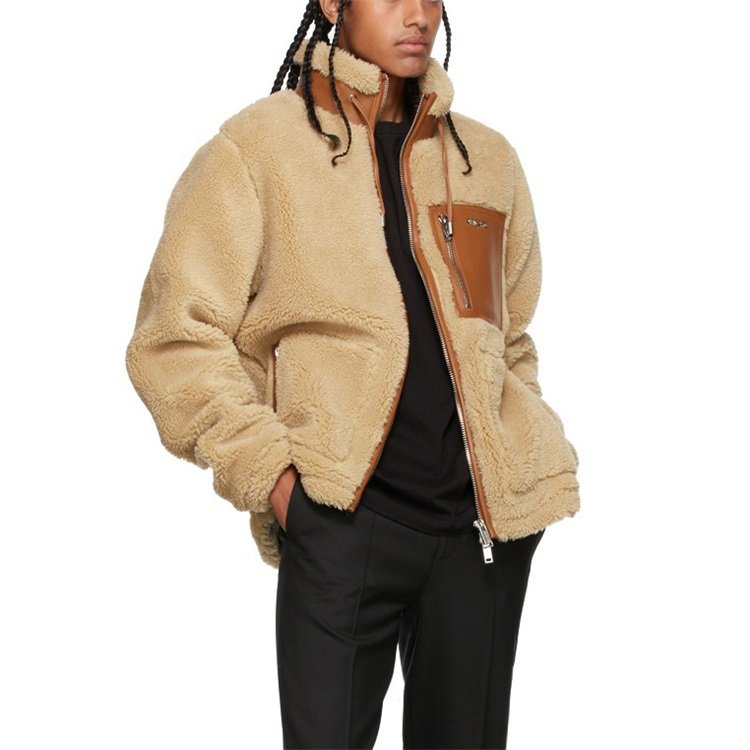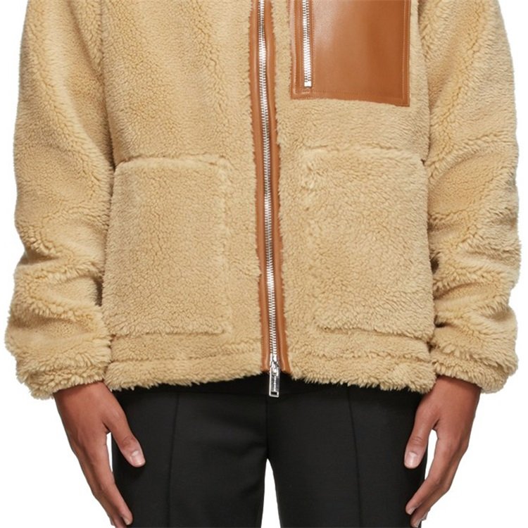 Hot Selling New OEM Custom winter printing color block patchwork sherpa fleece jacket for men