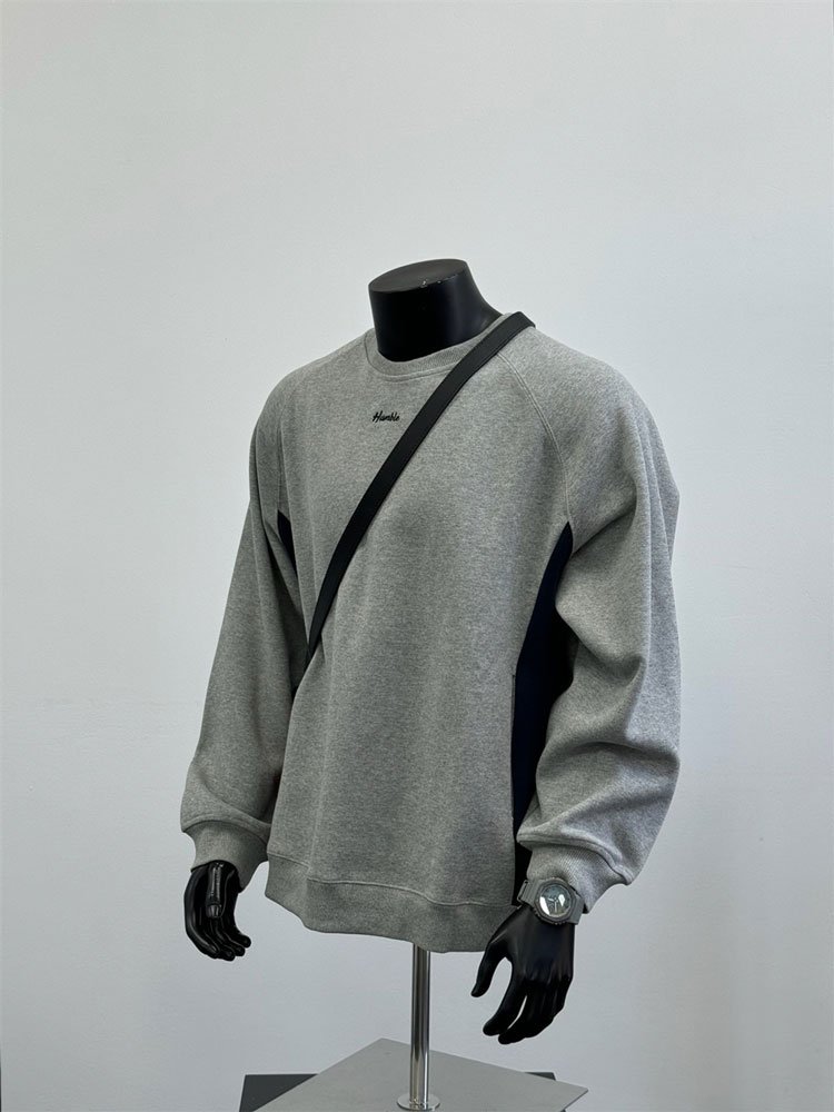 Minimalist Style Small Letter Embroidery Contrast Color Grey Round Neck Sweatshirt Pullover Top