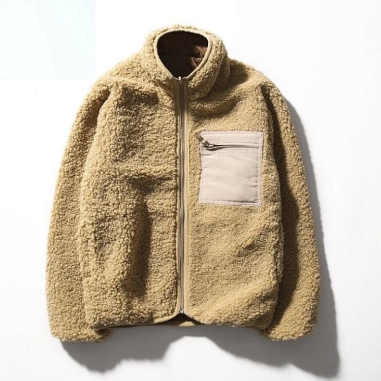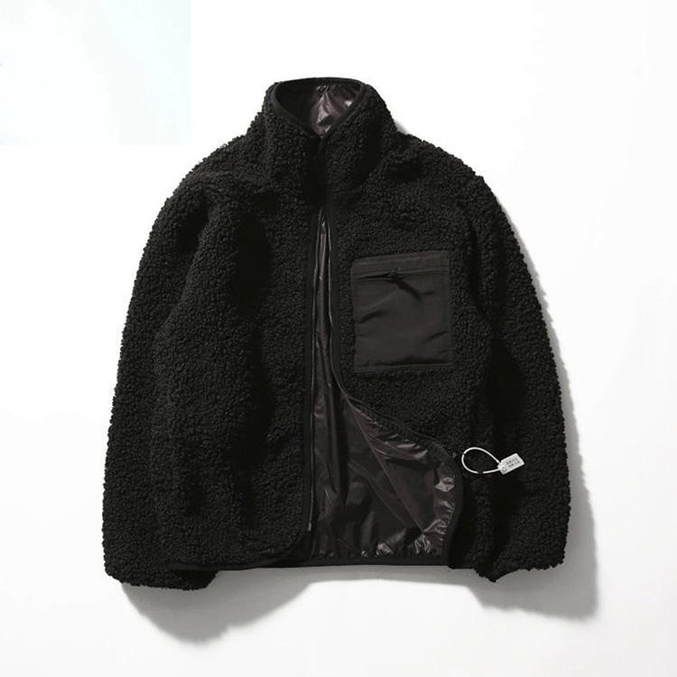 Customized Winter Fleece Jacket Coat Polar Solid Color Stand Collar Zipper Utility Loose Long Sleeve Oversize Custom Sherpa Fleece Jacket for Men.
