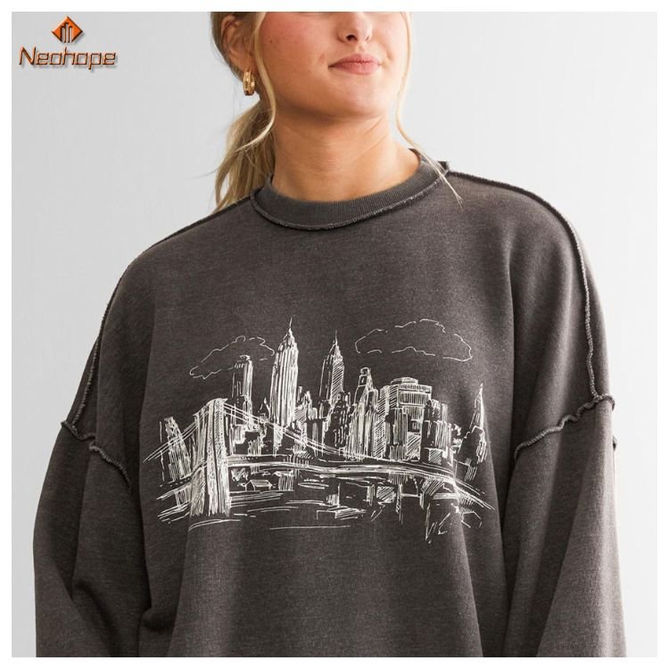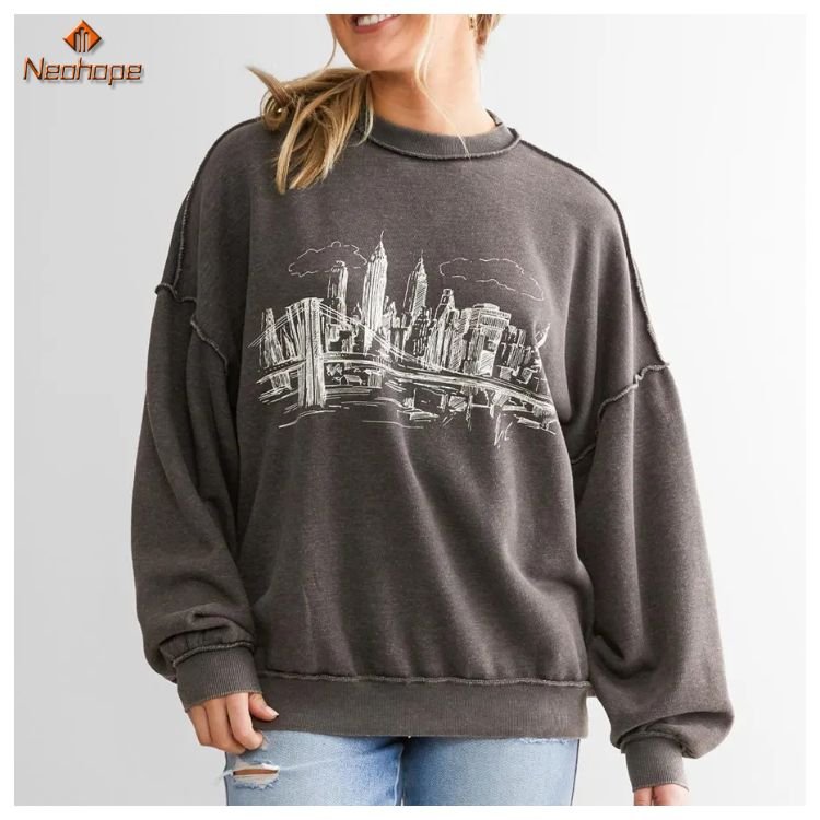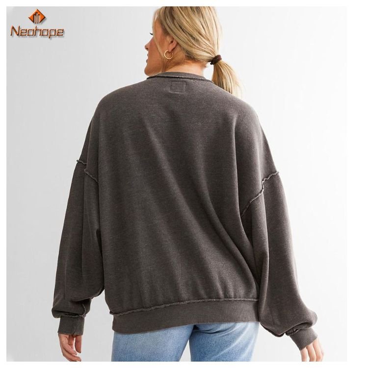 High Quality Wholesale Custom Logo Blank Acid Wash 100% Cotton Outer Seam Stitching Women Sweatshirts Printed.