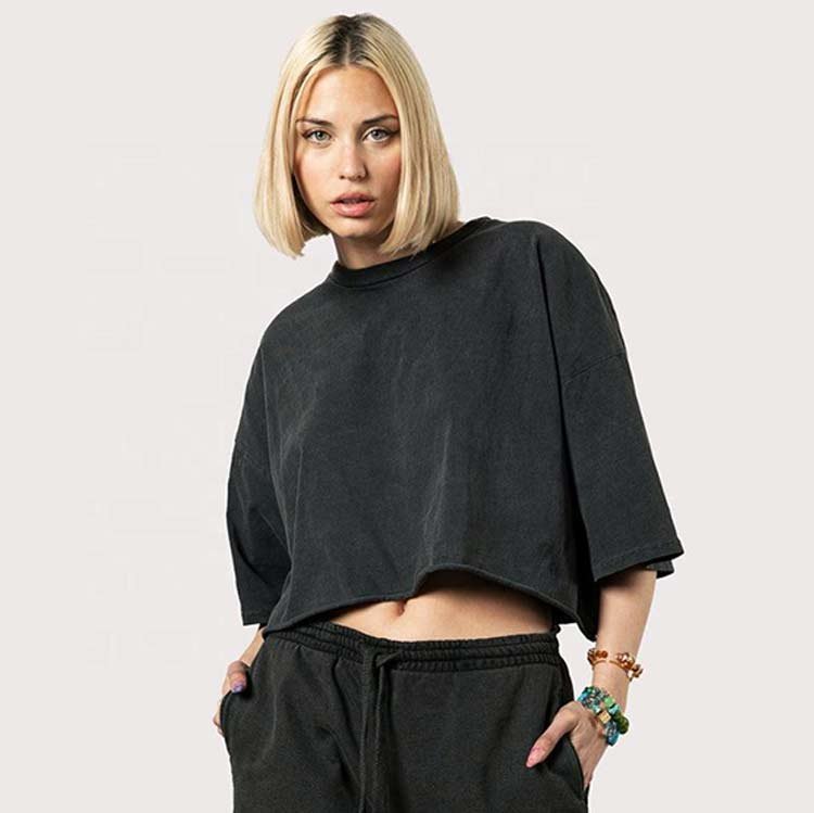 - Keywords: Women Black Crop Top T-Shirt