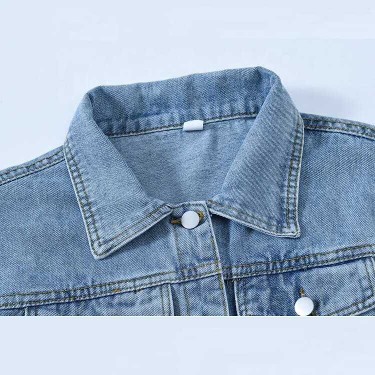 Womens Denim Jacket Women Crop Jacket, Customized High Quality Embroidered Logo