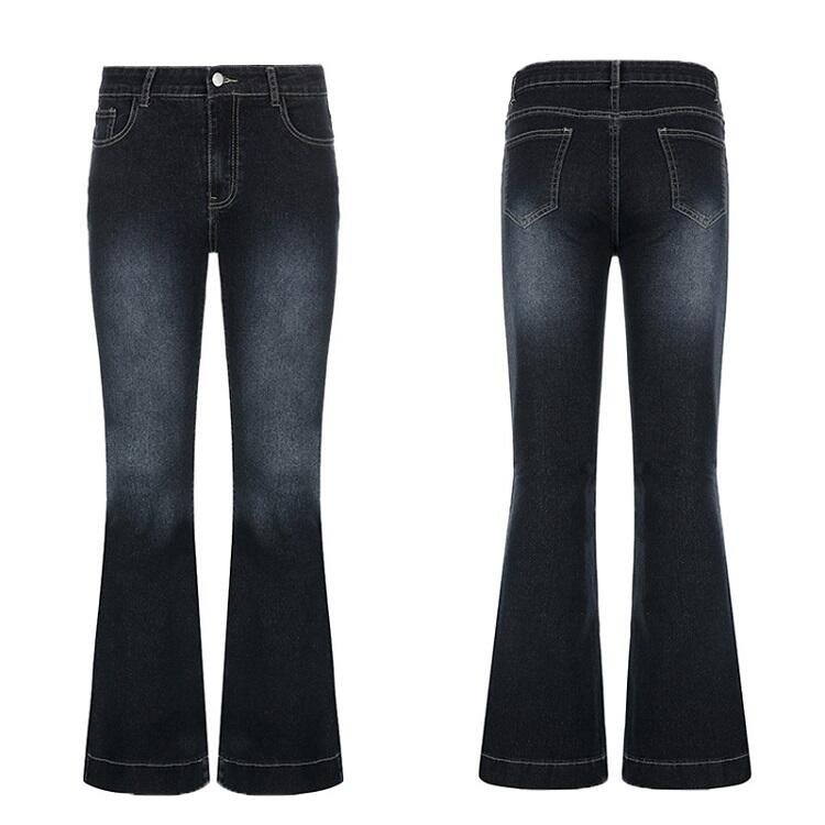 Manufacturer of International OEM Brands-Custom Made tapered European and American trend Street Fashionable Jeans Stretch, Flared Regular Length Washed Distressed Denim Jeans for Women